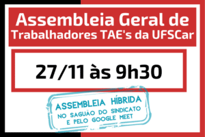 SINTUFSCar convoca categoria para assembleia geral nesta quinta-feira (27)
