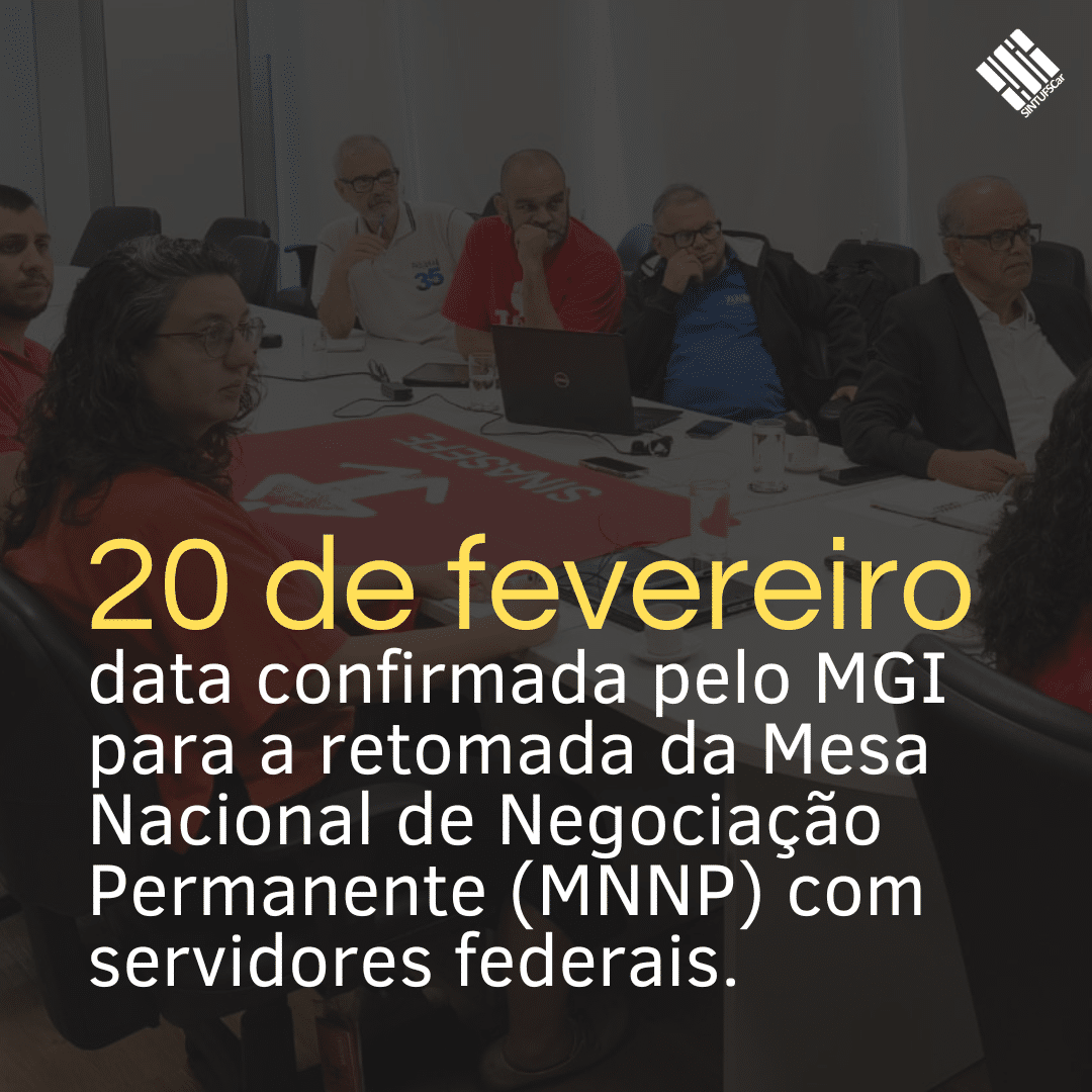 Dia 20 de fevereiro. Essa é a data confirmada pelo Ministério da Gestão e da Inovação em Serviços Públicos (MGI) em convite enviado às entidades, na última sexta-feira (24), para a retomada da Mesa Nacional de Negociação Permanente (MNNP) com servidores federais.