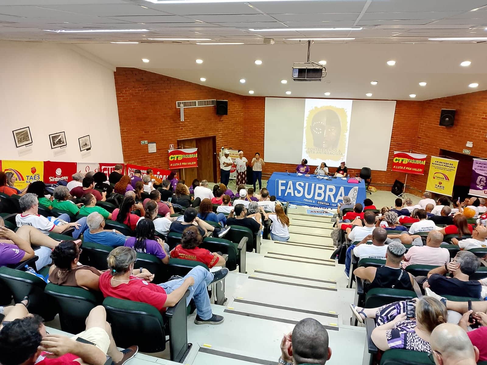 A Plenária Nacional da FASUBRA Sindical, realizada em Brasília nos dias 15 e 16 de novembro de 2025, reuniu delegações de todo o país para avaliar a conjuntura, discutir os ataques à carreira dos Técnico-Administrativos em Educação (TAEs), e deliberar sobre o próximo período de mobilização da categoria. O SINTUFSCar esteve presente, representado por Vânia Gonçalves e Doni Silva (campus São Carlos), Jeferson Silvestre (campus Lagoa do Sino) e, Paulo Lisboa (campus Sorocaba).