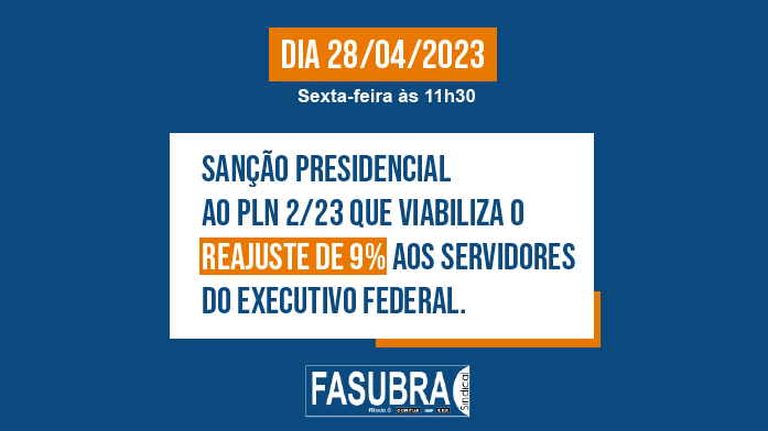 Após a votação no Congresso, onde foi aprovado o PLN 2, referente a recomposição de 9% dos salários dos SPF, na sexta-feira, dia 28/04, será sancionada pelo presidente Lula a lei para efetuar o pagamento.
